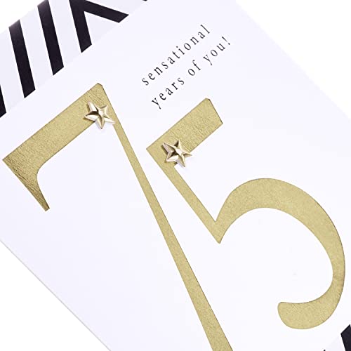Details: Hallmark Geburtstagskarte zum 75. Geburtstag, modernes Design, Rautenmuster, Schwarz, Weiß, Gold