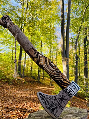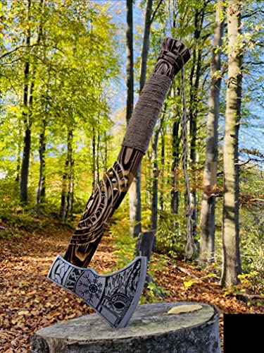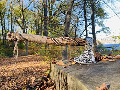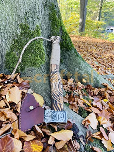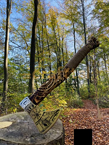 🪓 [Material] Diese handgefertigte Axt besteht aus einer 1095 hohen Kohlenstoffstahlklinge mit der besten Qualität des Aschwood -Griffs und Lederpackung am Griff. Die bestmögliche Viking Axe für Kohlenstoffstahl von bester Qualität verfügt außerdem über eine individuelle Gravur, Radierung und Schnitzerei mit hoher Qualität.