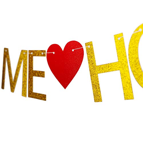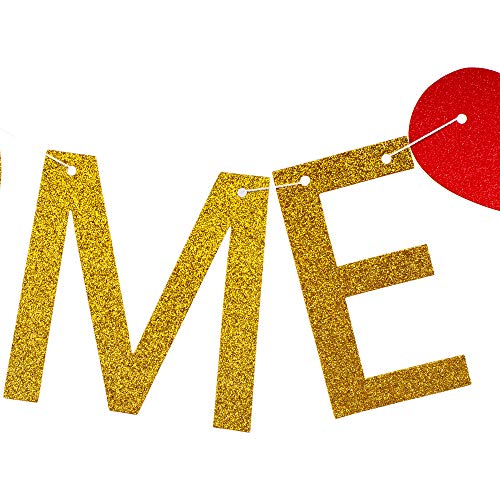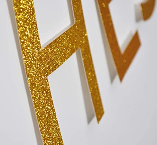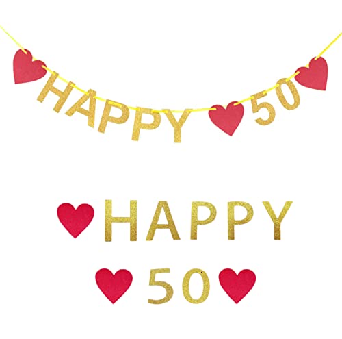 💝Lieferumfang: 1 x Happy 50 Girlande mit 3 Herzen Goldfarbenes Glitzerbanner zum 50. Jahrestag und Geburtstag, Party-Dekoration