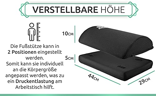👑 VERSTELLBARE HÖHE – Die Fußstütze in 2 Positionen verstellbar, Maße:44*29*15(10). Somit kann sie individuell an die Körpergröße angepasst werden, was zu ein Druckentlastung am Arbeitstisch hilft.