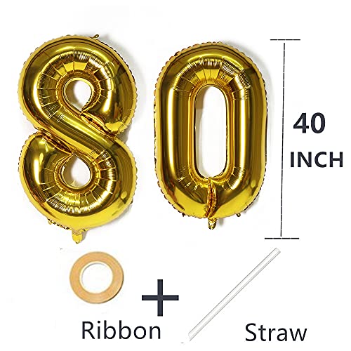 ❤ Einschließen: 2 Stück Ballon, Nummer „80“ in gold , messen 40 Zoll,ca. 100 cm .