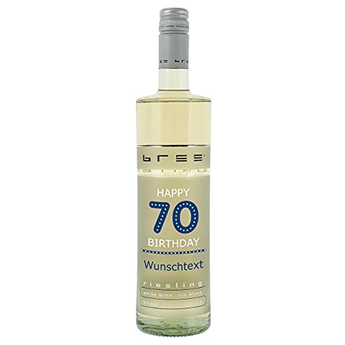 Details: Herz & Heim® BREE Weißwein Riesling feinherb (1 x 0.75l) zum 70. Geburtstag mit persönlichem Aufdruck