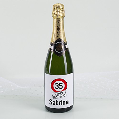 Details: Herz & Heim® Flaschenaufkleber zum Geburtstag im Verkehrszeichen-Look mit Name und Alter 1 Stück