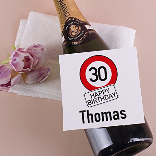 Das schlichte, aber aussagekräftige Motiv zeichnet ein rot-weißes Verkehrszeichen ab, in dem das Alter des Geburtstagskindes steht. Unter dem „Happy Birthday“-Glückwunsch findet sich auch der Wunschname. Das selbstklebende Etikett ist nicht nur einzeln, sondern auch im 6er oder 24er-Set erhältlich – so kann gleich eine ganze Bandbreite an Getränkeflaschen zum Geburtstag geschmückt werden!