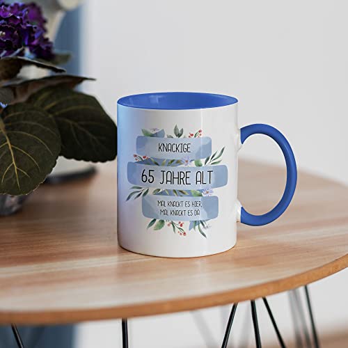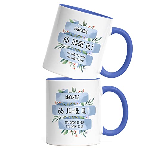 Details: Hey!Print Knackige 65 Jahre Alt Tasse Blau Humorvoll Spruch-Tasse Mal Knackt Es Hier Geschenkidee 65. Geburtstag