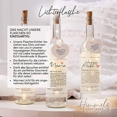 ✅ INDIVIDUELL – Du bekommst hier ein exklusives Himmelsflüsterer-Design, bei dem sowohl das Motiv als auch der Text von uns erstellt und rechtlich geschützt ist! Die Flasche wird von einem aufwendig designten Herz-Spruch umrundet sowie mit einem weißen Papier-Herz mit Kordel veredelt. Auf das Papierherzchen kannst du nochmals eine persönliche Widmung schreiben.