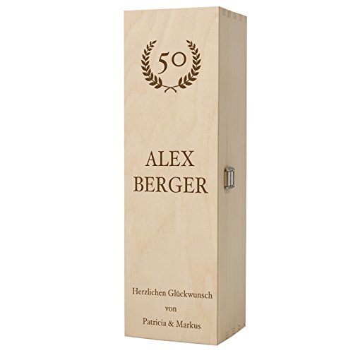 Champagner-Holzkiste, Wein-Holzkiste, Schöne Geschenkidee zum 50. Jahrestag als Geburtstagsgeschenk oder zum Jubiläum mit Personalisierung