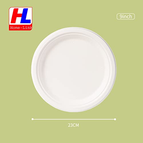 HL Home-Link Kompostierbare Einwegteller Rund – 50 Stück 23cm Einweggeschirr Speiseteller | 100 % Biologisch Abbaubar…