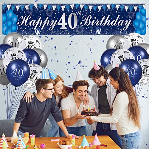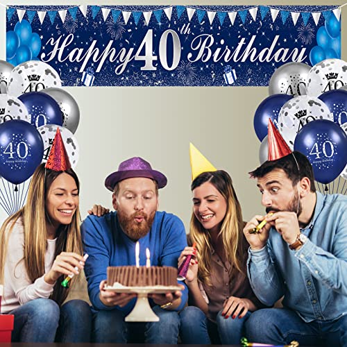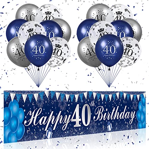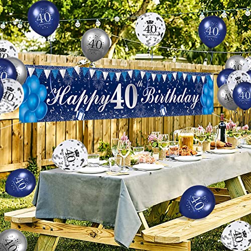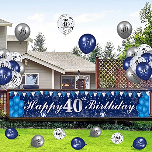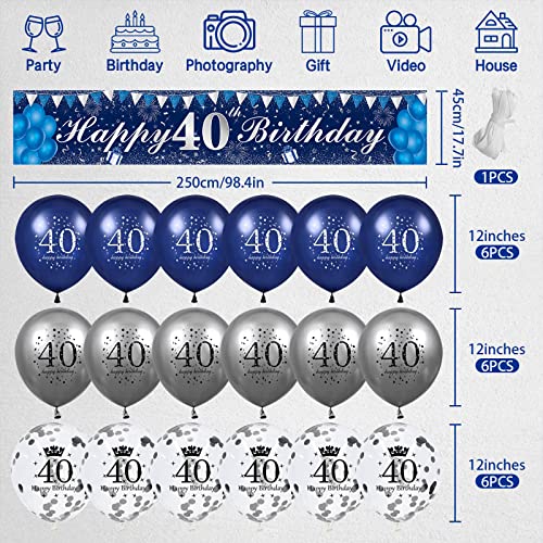 【40 Geburtstag Deko Kits】Deko 40 geburtstag einbeziehen 1 stück 250*40cm extra lange navy blau banner hintergrund, 12″ navy blau luftballons*6 stück, 12″ silber luftballons*6 stück, 12″ konfetti luftballons*6 stück, ein 6m seil und unser freundlicher kundendienst.