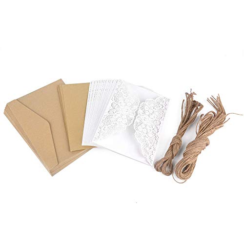 Rmeet 20er Pack Retro Laser Geschnitten mit Leeren Kraftpapier Innenbögen,Umschlag und Juteschnur Handgefertigte Vintage Karte für Hochzeit Geburtstag Weihnachtsjubiläum Muttertag