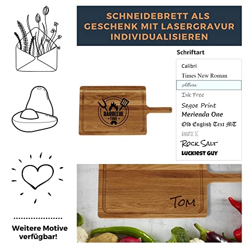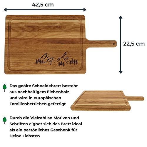 Details: HOFMEISTER® Schneidebrett mit Griff und Gravur des Namens und Motiv, aus Eiche, 42,5 cm, personalisiertes Geschenk…