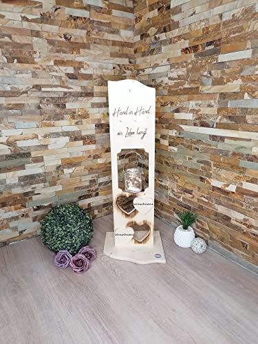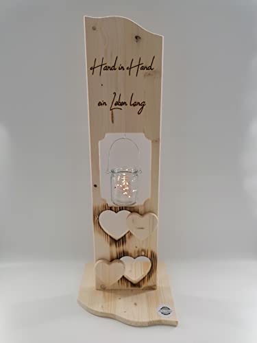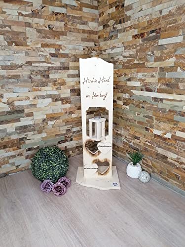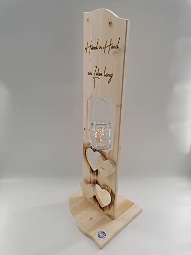 Details: Holz Deko Schild Hand in Hand Personalisiertes Hochzeitsgeschenk, Jahrestag mit Wunschname und Laterne (Glaslaterne)