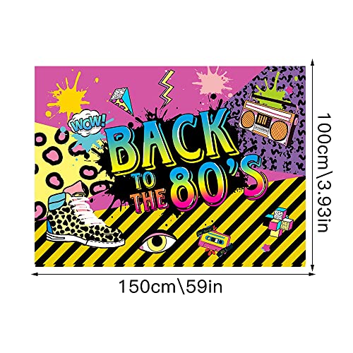 Zurück zum 80er Banner:Sie erhalten 1 Stück Retro 80er banner,Größe von 150 cm x 100 cm/59,1 x 39,4 Zoll. Sie ist groß genug für die Party dekoration der 80er Jahre und Fotografie auf Ihrer Party.