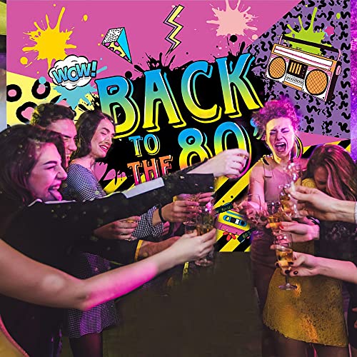 Details: Honatrv 80er Party Banner 80 Jahre Party Dekoration Fotohintergrund zum 80 Geburtstags Party Deko für neon 1980er Jahre…