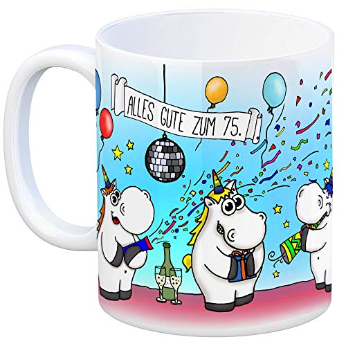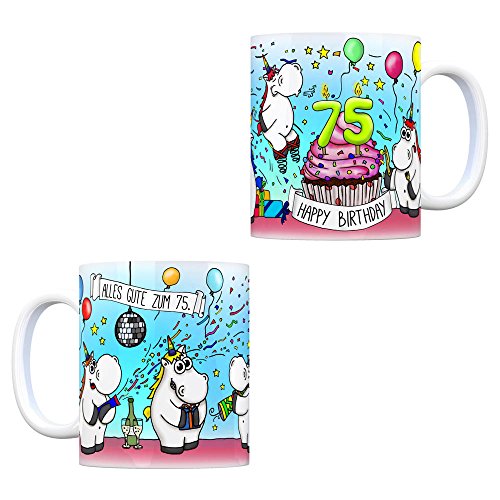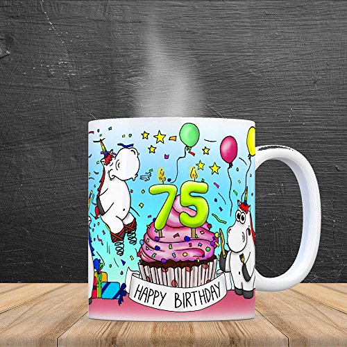 Honeycorns Tasse zum 75. Geburtstag mit Muffin und Einhorn Party Tasse Kaffeetasse Becher mug Teetasse Büro Geburtstag…