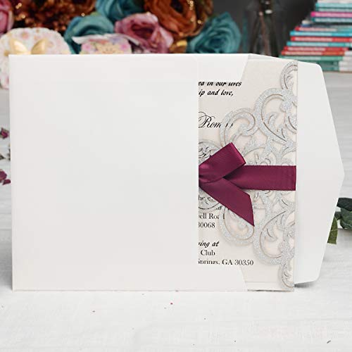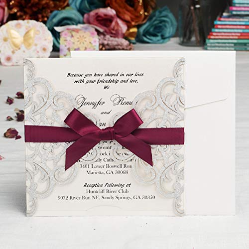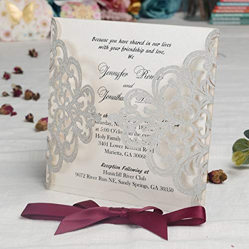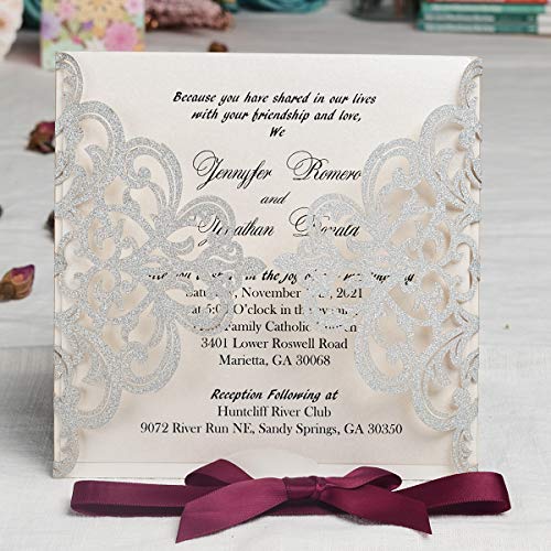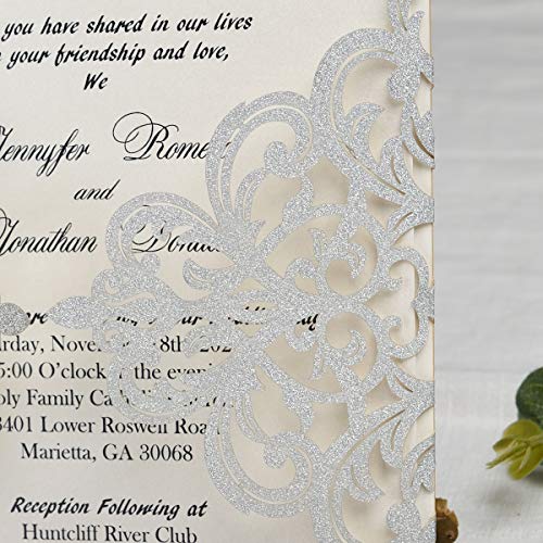 Details: Hosmsua 20 Stück Silber Hochzeitseinladungen Lasercut Spitze Hochzeit Einladungen Kit und Umschläge Brautparty Verlobung…