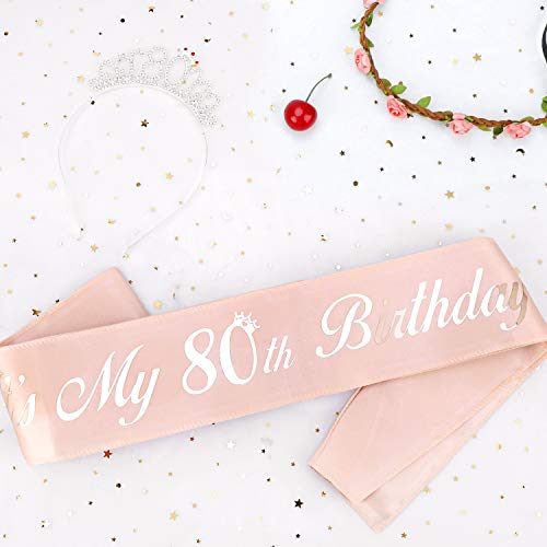 Details: HOWAF Rose Gold It’s My 80th Birthday Schärpe 80. Geburtstag Schärpe und Tiara, 80. Geburtstag Krone Geburtstag Haarreif…