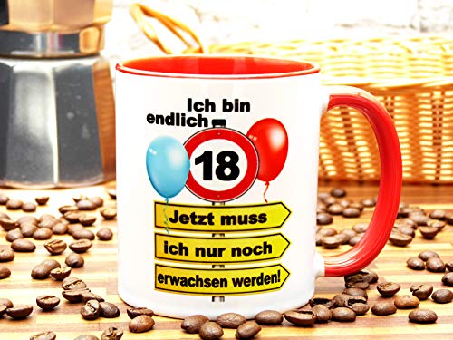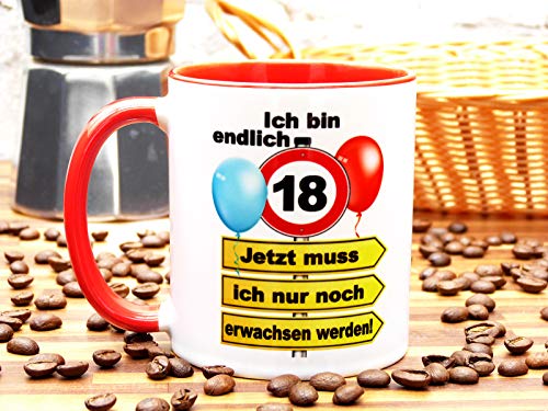 Details: Ich bin endlich 18 Jetzt muss ich nur noch erwachsen werden Tasse Becher Kaffeetasse Geschenk zum Geburtstag…