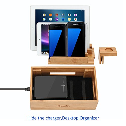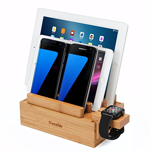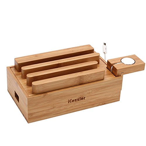 Details: iCozzier® Mini-Bambus-Uhrenständer, Universal-Ladestation und Kabel-Organizer für Apple Watch, iPhone, iPad, Samsung…