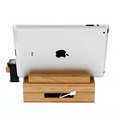 Geräumige Basis: Der Innenraum der Basis ist bis zu 30 mm hoch und bietet Platz für größere elektronische Geräte. Die Größe beträgt 250 x 130 x 30 mm. Nur Ständer aus Bambusholz; Ladegerät und iWatch sind nicht im Lieferumfang enthalten.