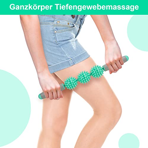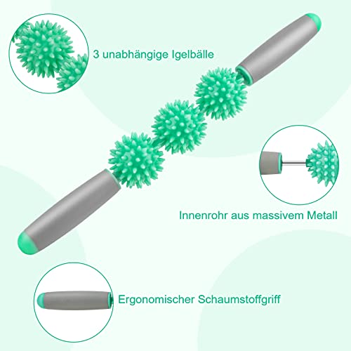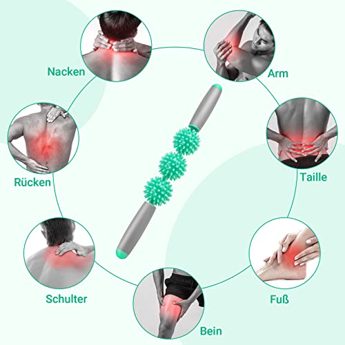 💪 【Hohe Qualität】3 unabhängige stachelige Bälle, ergonomischer Schaumstoffgriff mit hoher Dichte, gebaut, um ein Leben lang auf einem Metallkern zu halten. Der Muscle Roller Stick unterscheidet sich von herkömmlichen Schaumstoffrollen und ist in der Lage, tiefer in die Muskelfaszien einzudringen, um den härtesten Trigger zu erreichen.
