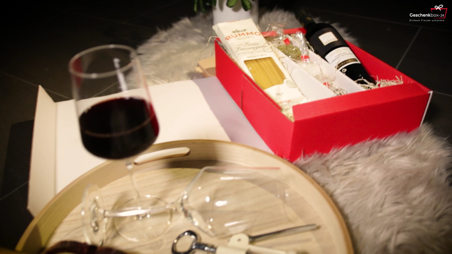 🟩 ⬜ 🟥 Italienischer Geschenkkorb gefüllt mit bestem Inhalt: Rotwein Corvina Cabernet Sauvignon, Rummo Spaghetti Nudeln, Pasta Sauce, Meersalz, Oregano, Kräuter Olivenöl, Tomaten & Kaffee Schokolade Pralinen