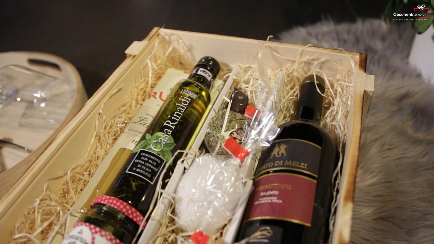 Details: Italienisches Geschenkset „Verona“ | Geschenkkorb gefüllt mit Wein, italienischen Spezialitäten & edler Holzkiste…