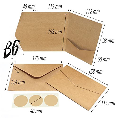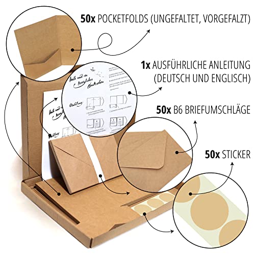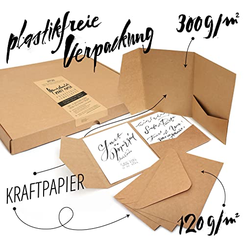 Details: Japun – Pocketfold blanko Kraft-Papier Karten inkl. Briefumschläge, Hochzeit, Einladung, gestalten, beschriften – DIN A6…
