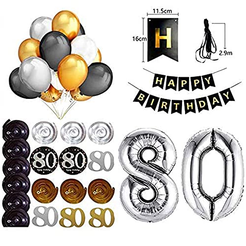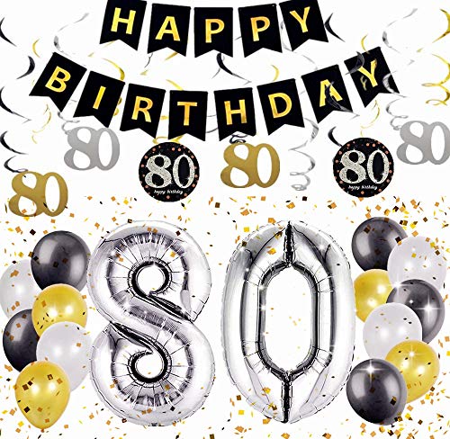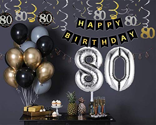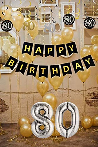 80th BIRTHDAY PARTY DECORATIONS KIT: Das Paket enthält 1 Päckchen „Happy Birthday“ Banner, 12 Stück funkelnde hängende Strudel, 1 x 32 Zoll „80“ 12 x Luftballons für das 80. Geburtstagsfeier-Dekorationsereignis. Jeder wird beeindruckt sein.