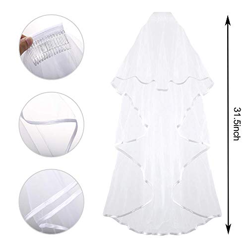 【Zubehör inklusive】: 1 stück weißen Schleier mit Kamm, 1 stück Stirnband, 1 stück Satin Schärpe, 1 Seite temporäre Tätowierung.