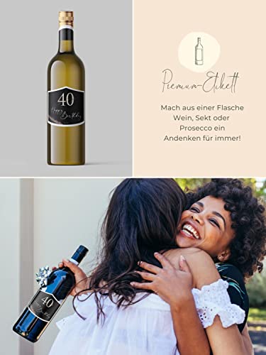 Mach aus einer Flasche Wein, Prosecco oder Bier mit unserem Flaschenetikett ein ganz besonderes Geschenk zum 40 Geburtstag und erschaffe damit ein einmaliges Andenken für immer.