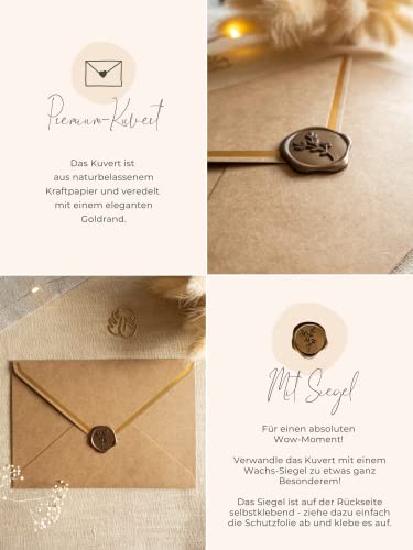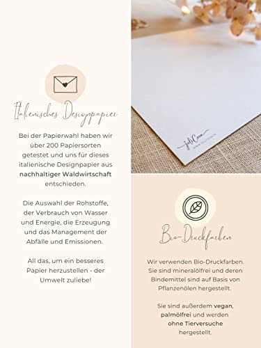 Aus Liebe zur Einzigartigkeit ist unsere Schriftart handgeschrieben, auf 400g italienisches Designpapier gedruckt, das Herz heißfoliengeprägt und dazu gibt es einen nachhaltigen Natur Briefumschlag.