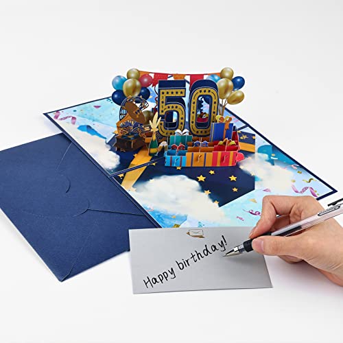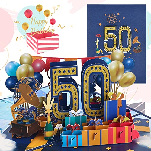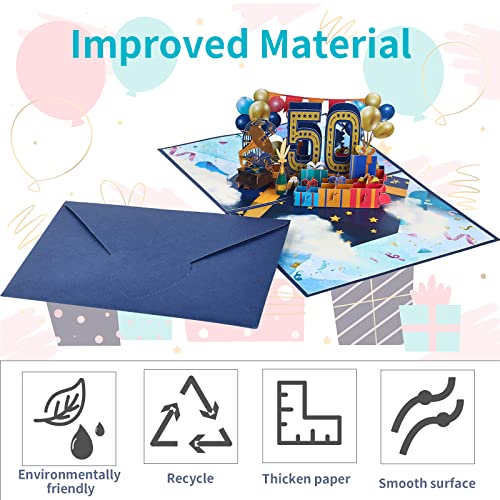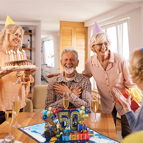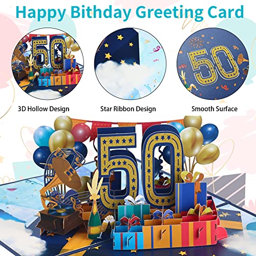 ✨Einzigartiges Design: Die Pop up Geburtstagskarte ist schön, personalisiert, einfach und stilvoll. 3D Geburtstagskarte bringt mehr Überraschungseffekte als herkömmliche Geburtstagskarten. Wenn die Karte geöffnet wird, erscheint sie automatisch als exquisites symbol zum 50. Geburtstag. Mit dem Hinzufügen von Sterne und Luftballons wird es der Bringen Sie eine große Überraschung für den Protagonisten der Party.