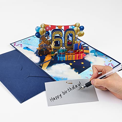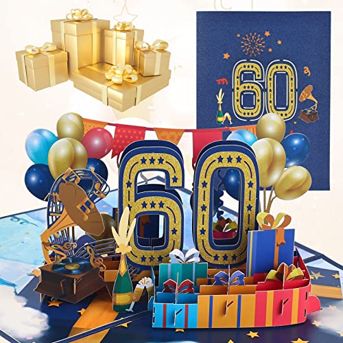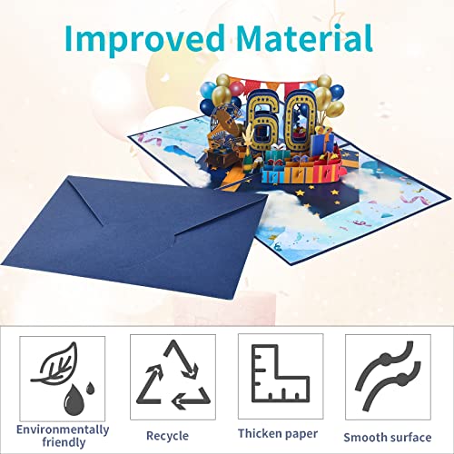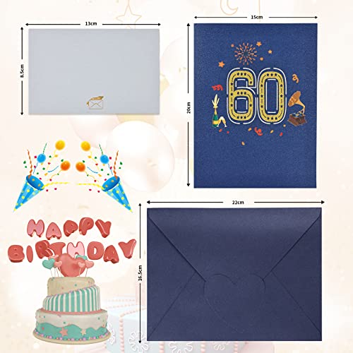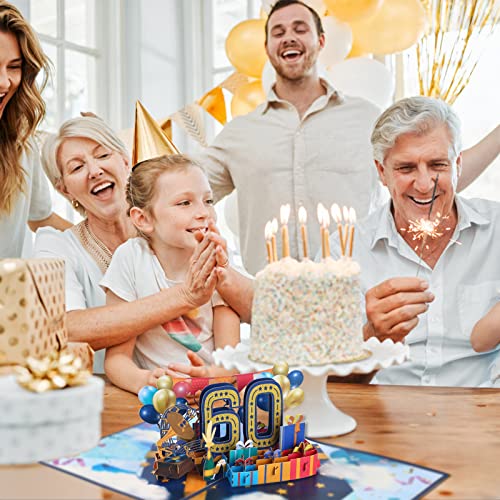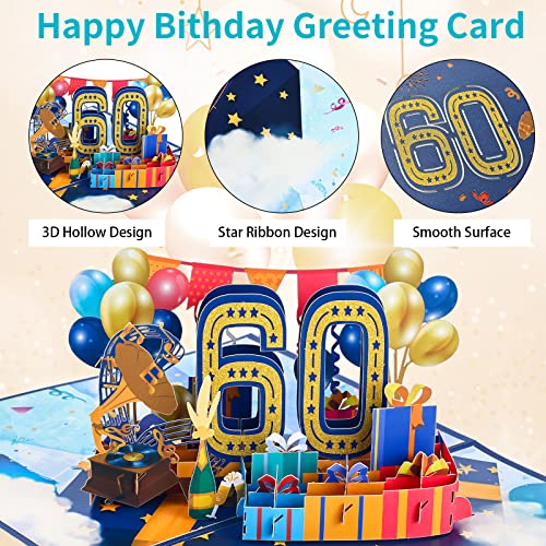 ✨Einzigartiges Design: Die Pop up Geburtstagskarte ist schön, personalisiert, einfach und stilvoll. 3D Geburtstagskarte bringt mehr Überraschungseffekte als herkömmliche Geburtstagskarten. Wenn die Karte geöffnet wird, erscheint sie automatisch als exquisites symbol zum 60. Geburtstag. Mit dem Hinzufügen von Sterne und Luftballons wird es der Bringen Sie eine große Überraschung für den Protagonisten der Party