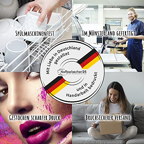 ✅ DESIGNT UND BEDRUCKT IN DEUTSCHLAND – Kaffeebecher in Handarbeit bedruckt, Hochauflösender Druck, Spruch ist auf beiden Seiten der Tasse angebracht, Liebevolles Design in verschiedenen Farben.
