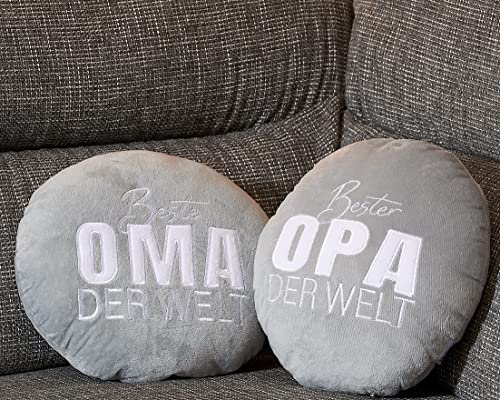 KAMACA 2er Set Dekokissen Kissen hellgrau Beste Oma und Bester Opa der Welt tolles Geschenk Größe je ca. 25×25 cm