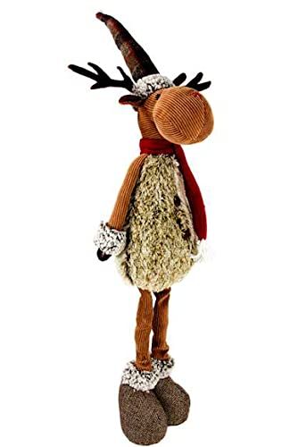 Bezaubernder XL – Weihnachts – Deko – ELCH / RENTIER aus Stoff mit Teleskop-Beinen – bis zu 98 cm hoch – ausgefallene Dekoidee für Ihre Wohnung oder zum Verschenken in Winterzeit, Advent, Weihnachten – einfach zum Verlieben