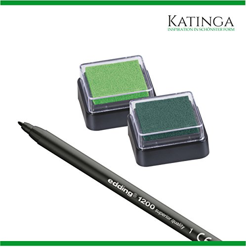 – Zwei Stempelkissen (ca. 3x3cm) in hellgrün und dunkelgrün (nicht für Kinder unter 3 Jahren geeignet). Die Pigment-Stempelfarbe auf Wasser-Basis lässt sich sehr einfach wieder vom Finger abwischen. Wir empfehlen den Gästen ein paar Feuchttücher zum Abwischen der Finger zur Verfügung zu stellen.