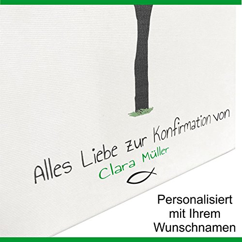 Details: KATINGA Personalisierte Leinwand zur KONFIRMATION/Motiv Baum- als Gästebuch für Fingerabdrücke (mit Name)