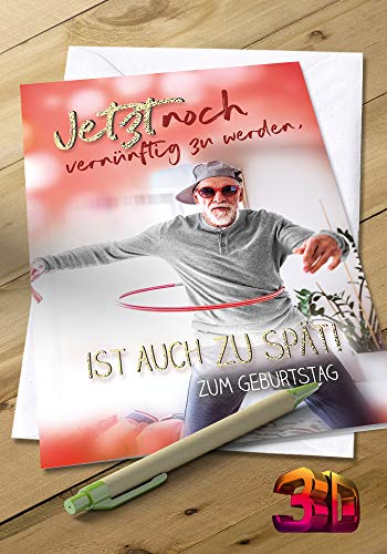 Details: KE – lustige Geburtstagskarte mit 3D Effekt – Klappkarte zum Geburtstag – im Format DIN B6 – Klappkarte inkl. Umschlag…