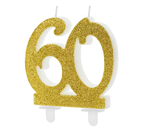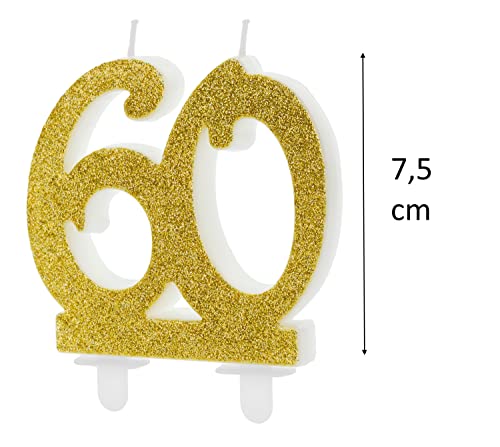 🎉Die süße hochwertige Zahlenkerze Nummer 60 goldener Glitzer ist echter Hingucker in jedem Feier und Geburtstagsparty, Jubiläum 60 Jahre Geburtstag
