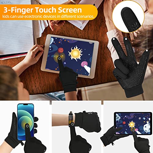 Sensible Touchscreen-Funktion: Kinderhandschuhe Mit der 3-Finger-Touchscreen-Funktion am Daumen und Zeigefinger ermöglichen unsere Sport Touchscreen Kids Gloves Kindern, elektronische Geräte zu verwenden oder Online-Kurse mit Handschuhen zu besuchen. Ein wunderbares Geschenk für Kinder im kalten Winter