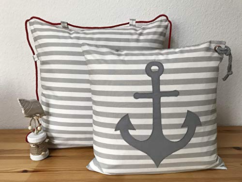 Details: 1 Maritime Kissenhülle, Kissenbezug, Landhausstil Kissen * Anker grau * grau/weiß gestreift.