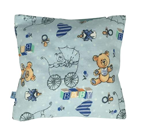 Kuschliges kleines Kissen mit Rassel Geräusch mit niedlichen Teddys. Details wie Zipfel animieren zum Tasten,Greifen und Hören. Das Innenleben besteht aus Baumwolle, die Füllung (Bio-Hirseschalen). Darin eingenäht das „Klappergeräusch“. Für kleine Kinderhände ist dieses Kissen ideal, um mit Tasten und Greifen die ersten Erfahrungen zu sammeln. Das Knistern und Rascheln der Hirseschalen stimuliert das Gehör und somit das Wahrnehmen. Die knalligen Farben animieren zum zugreifen. Dieses Kissen ist auch mit anderen Füllungen erhältlich. Größe: 15cm x 15cm Bezug, Baumwolle waschbar bei 60°