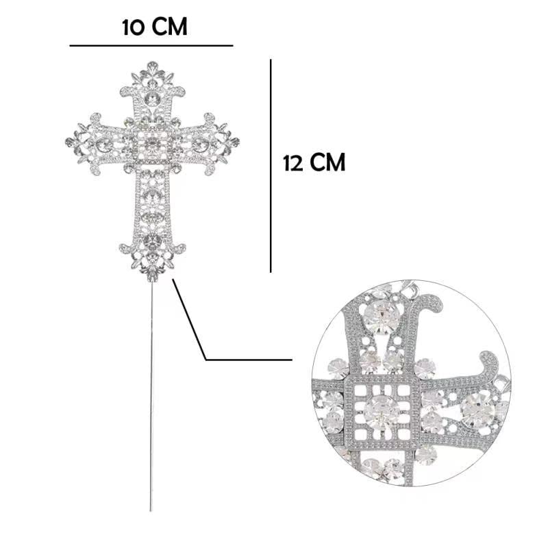 Details: Kreuz Tortendeko Silber Taufe Konfirmation Kommunion Cake Topper Diamantkreuz Kuchen Deko