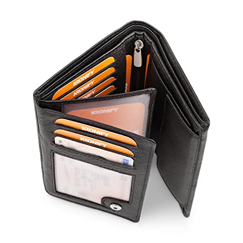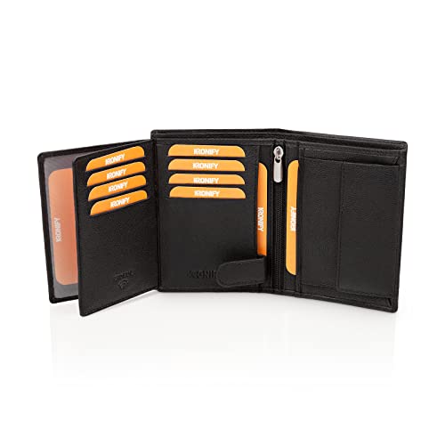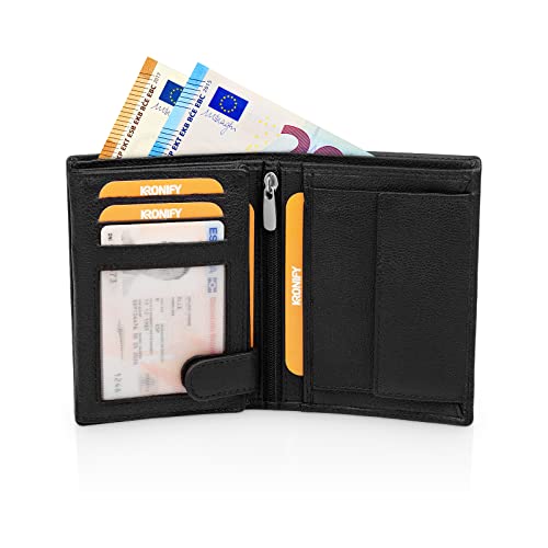 Details: KRONIFY Leder Geldbörse Herren I Echtleder Geldbeutel I RFID Schutz I Hochformat I Portmonee mit Münzfach I 13…