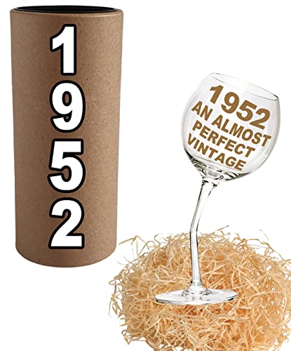 Im Inneren der Röhre befindet sich die Überraschung … das „betrunkene“ Weinglas mit der Aufschrift „AN ALMOST PERFECT YEAR“. Der schiefe Weinglas eignet sich perfekt für Geburtstagsfeiern, denn dank der zusätzlichen Glückwunschbotschaft wird jeder Trinkspruch aufgewertet und bietet den Empfängern ein einzigartiges und lustiges Erlebnis.