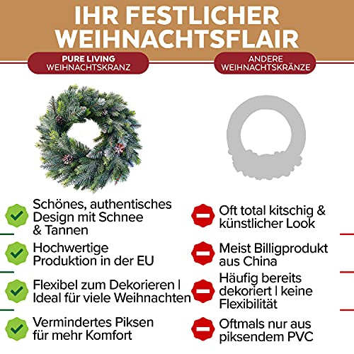✅ MADE IN EU – AUS DER WEIHNACHTSWERKSTATT (FAST) UM DIE ECKE: Der Pure Living Adventskranz für Tür & Co. wird hochwertig & sicher aus schwer entflammbarem Hauptmaterial in der EU hergestellt – dieser Türkranz mit Tannen-Optik muss nicht erst tausende Kilometer aus China zurücklegen, sondern kommt im Premium-Style zu Ihnen, damit er viele Jahre in Form bleibt & seinen Weihnachtszauber versprühen kann