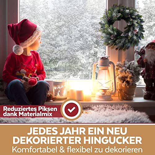 ✅ DER PIKST JA KAUM – SUPER ANGENEHM ZUM DEKORIEREN: Egal, ob Sie den Kranz für Weihnachten als Türkranz oder auch im Wohnzimmer als feierliche Ergänzung Ihrer Weihnachtsdeko nutzen, das Aufhängen & Dekorieren ist äußerst komfortabel. Dafür sorgt der clevere Materialmix aus 50% PE und 50% PVC – minimales Piksen für maximalen Komfort & natürlich jede Menge Deko-Spaß