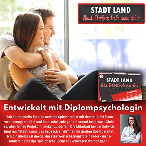 ✅ MIT DIPLOMPSYCHOLOGIN ENTWICKELT: Für die Entwicklung dieses Spieles haben wir mit einer Diplom-Psychologin zusammengearbeitet. Dadurch ist es uns gelungen innovatives Spieledesign mit jahrelanger Erfahrung in der Paartherapie zu verknüpfen. „Stadt, Land, das liebe ich an dir“ ist damit besser als jeder Beziehungsratgeber.